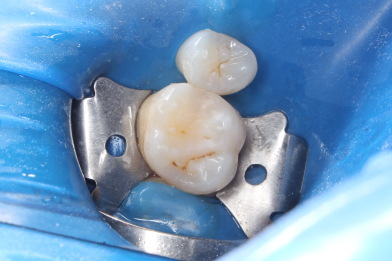 При профилактическом осмотре полости рта у пациента был выявлен кариес 2.6 зуба. Было произведено лечение кариеса с восстановлением анатомической формы зуба.